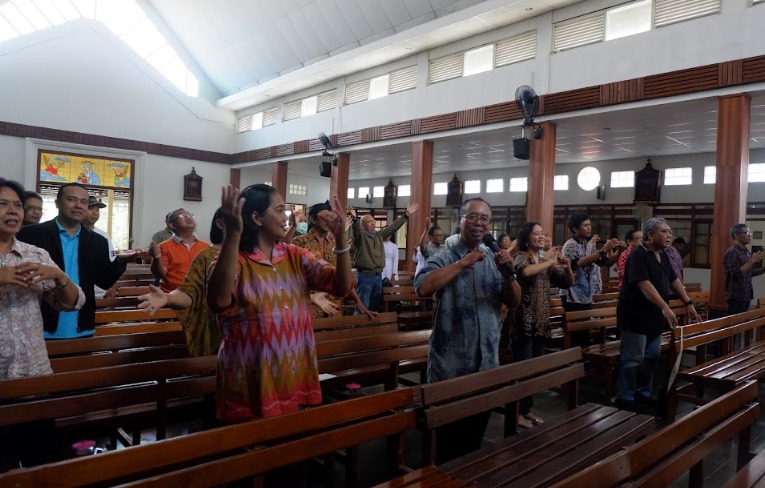 Kobarkanlah hati kami dengan api Roh Kudus-Mu, agar bersama seluruh masyarakat Indonesia terus mengupayakan tatanan kehidupan berdasarkan Pancasila seraya menghadirkan Kerajaan Allah demi terwujudnya peradaban kasih.