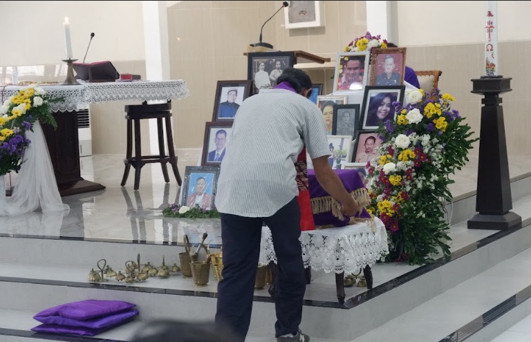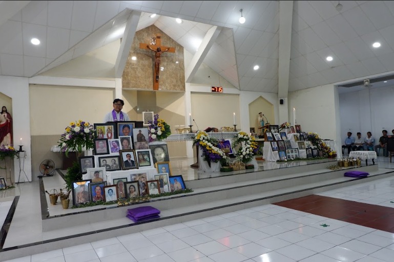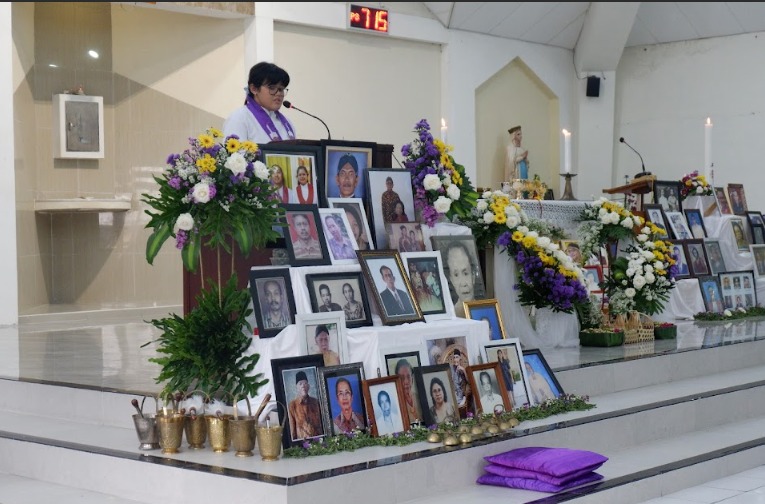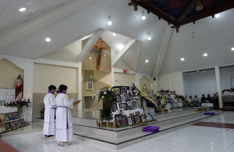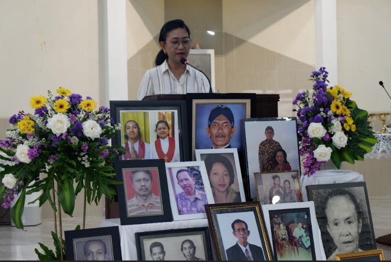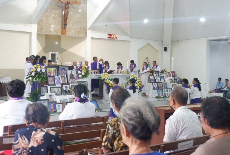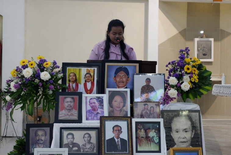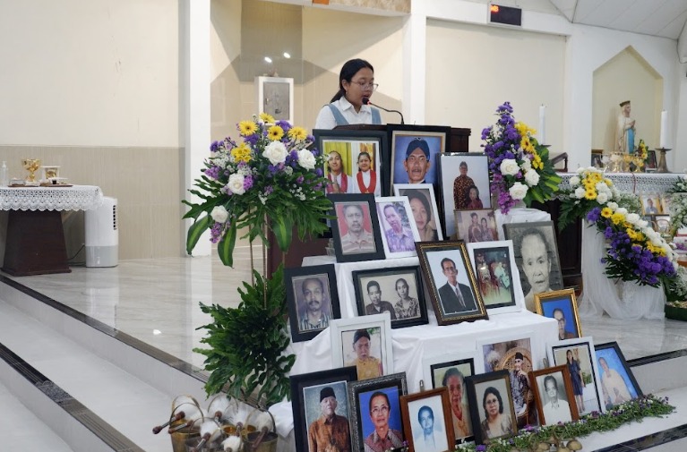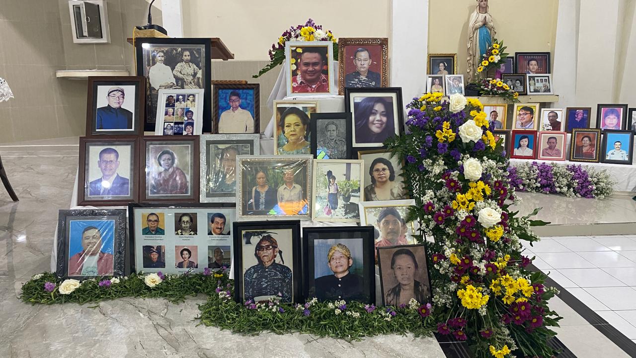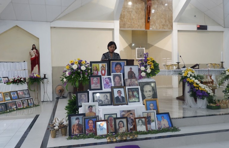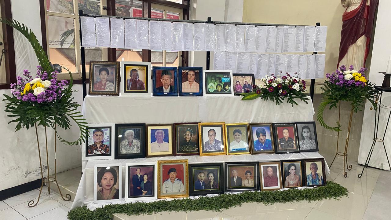 Sebelum misa dimulai, suasana di dalam gereja dipenuhi keheningan dan rasa haru ketika dibacakan nama-nama umat yang telah berpulang, sebanyak ±1.440 nama. Setiap nama yang disebut menjadi tanda kasih dan kenangan yang tidak pernah pudar — sebuah ungkapan bahwa mereka tetap hidup dalam doa dan ingatan umat yang masih berziarah di dunia.