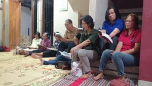 Pertemuan APP (Aksi Puasa Pembangunan) ke-3 berlangsung dengan penuh kebersamaan di rumah Ibu Aniek. Acara dimulai dengan doa pembuka, kemudian dilanjutkan dengan kegiatan utama, yaitu drama, diskusi kelompok, dan sesi sharing.