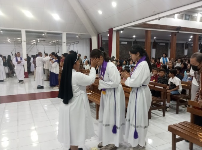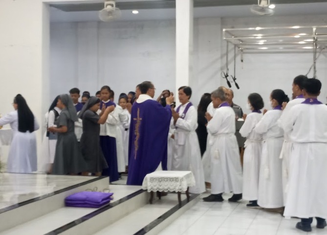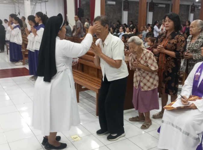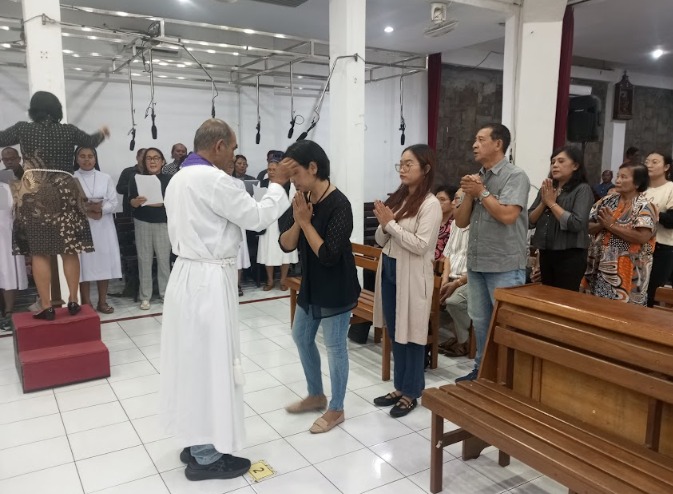Umat Katolik mengawali Masa Prapaskah dengan mengikuti Perayaan Ekaristi Rabu Abu, yang ditandai dengan penerimaan abu di dahi sebagai simbol pertobatan, kerendahan hati, dan tekad untuk memperbarui hidup.