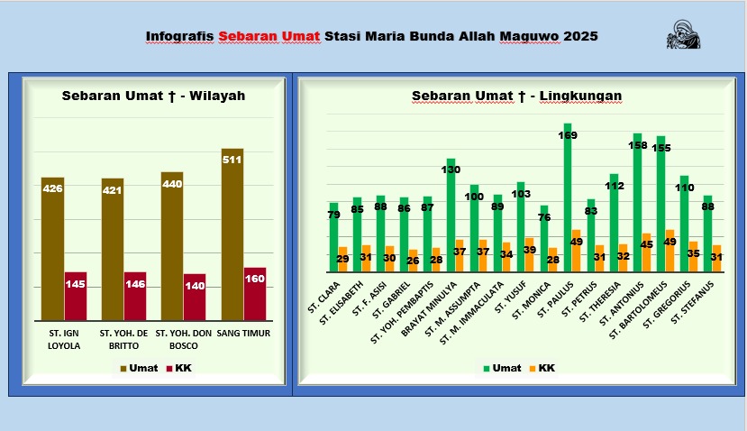 Stasi Maria Bunda Allah Maguwo kembali merilis Infografis Data Umat tahun 2024-2025 sebagai bentuk keterbukaan sekaligus cara mudah untuk melihat perkembangan komunitas umat kita. Infografis ini merangkum berbagai data penting tentang kehidupan menggereja, mulai dari jumlah umat, struktur wilayah, hingga sebaran lingkungan.