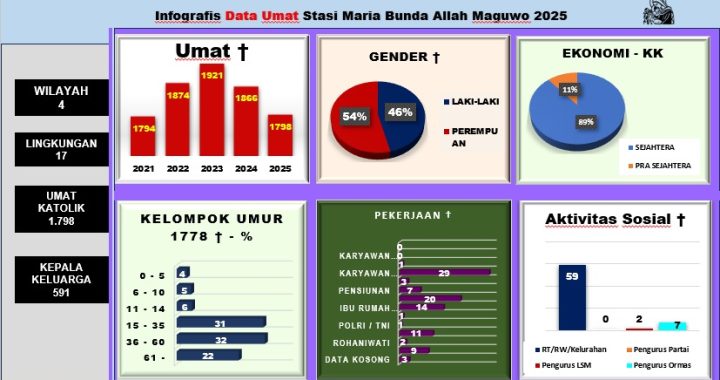 Lewat infografis ini, Stasi Maguwo ingin mengajak seluruh umat melihat perjalanan pastoral secara lebih terbuka dan terukur. Semoga data ini menjadi dasar bagi kita untuk terus memperbaiki pelayanan, memperkuat kebersamaan, dan menumbuhkan iman secara lebih nyata dalam kehidupan sehari-hari.
