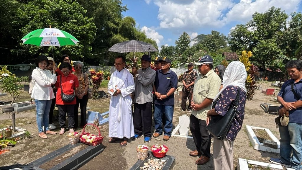 Dalam suasana yang penuh hening dan haru, para pengurus berdoa di pusara para pendahulu, mengenang segala kebaikan, pengorbanan, dan kasih yang telah mereka tanamkan. Setiap doa yang terucap menjadi untaian syukur dan penghormatan atas segala jasa mereka. Hembusan angin yang lembut seolah menjadi saksi betapa besarnya cinta kasih yang diwariskan oleh para sesepuh bagi kehidupan iman umat di Maguwo.