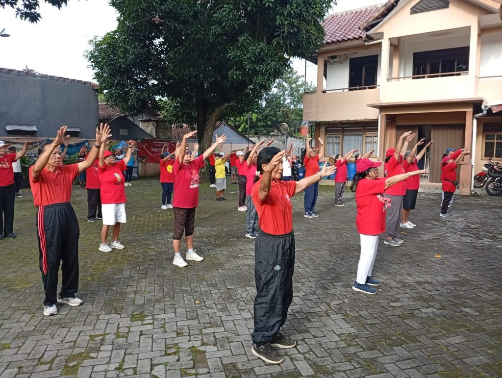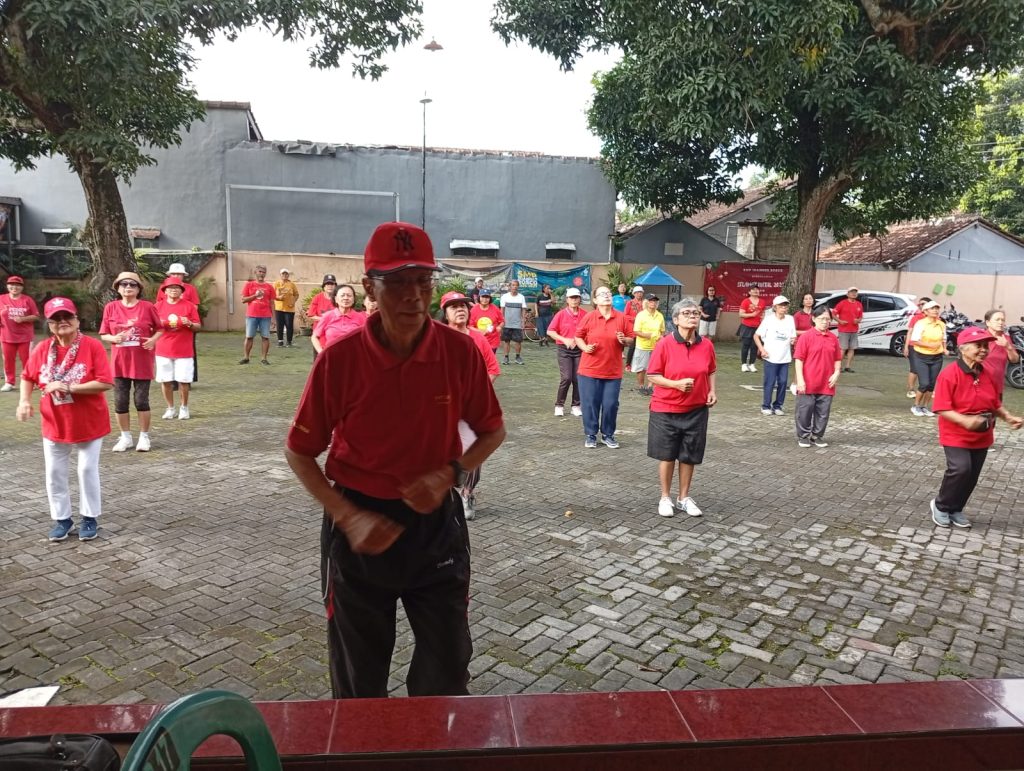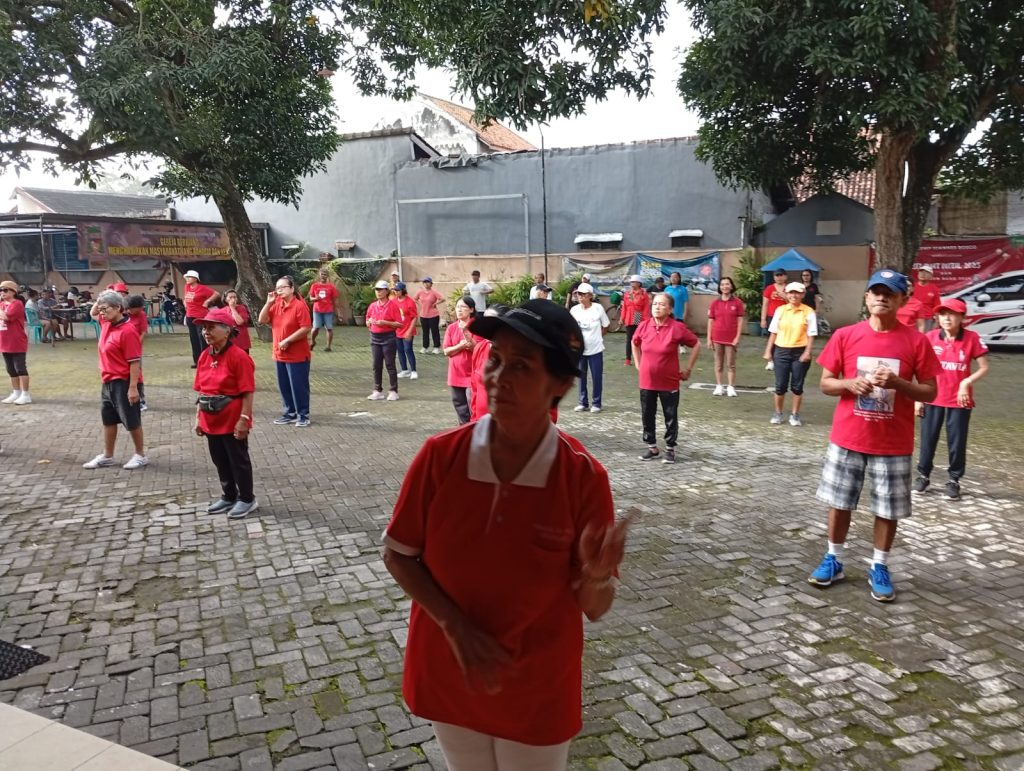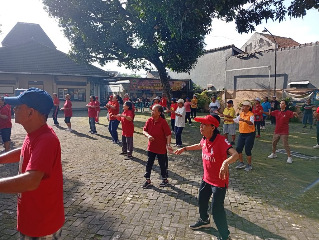 menyala gak tuh……dengan dress code warna merah, umat maguwo mengadakan senam sehat di belakang gereja GMBA.