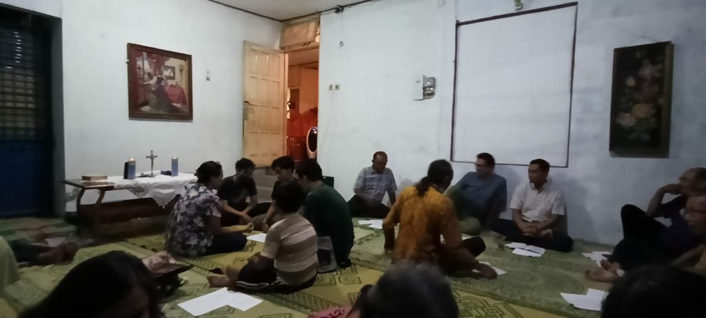 Kamis malam, 15 Mei 2025 — Suasana hujan rintik-rintik, teduh dan penuh hikmat menyelimuti kediaman Ibu Ritta ketika sekitar sepuluh umat dari berbagai usia berkumpul untuk mengikuti Renungan Bulan Katekese yang diadakan pukul 19.00 WIB. Acara ini merupakan bagian dari rangkaian pembinaan iman yang dilaksanakan secara sederhana namun sarat makna, di tengah kehidupan umat yang rindu akan penguatan rohani.