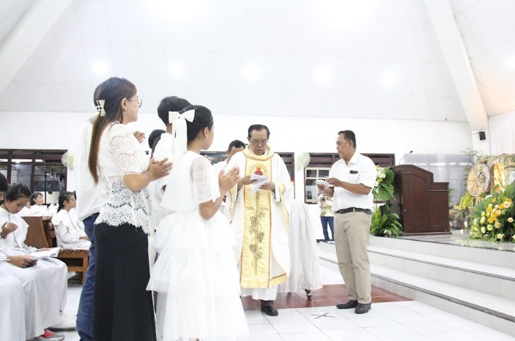 Sukacita itu semakin lengkap dengan pelaksanaan sakramen baptis, di mana 9 orang menerima rahmat pembaptisan. Dalam momen ini, Gereja menyambut anggota baru yang dilahirkan kembali dalam Kristus, sebuah tanda nyata bahwa kehidupan baru terus bertumbuh dalam iman.